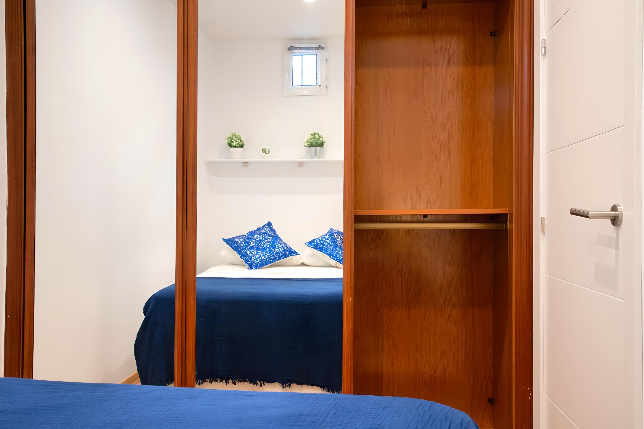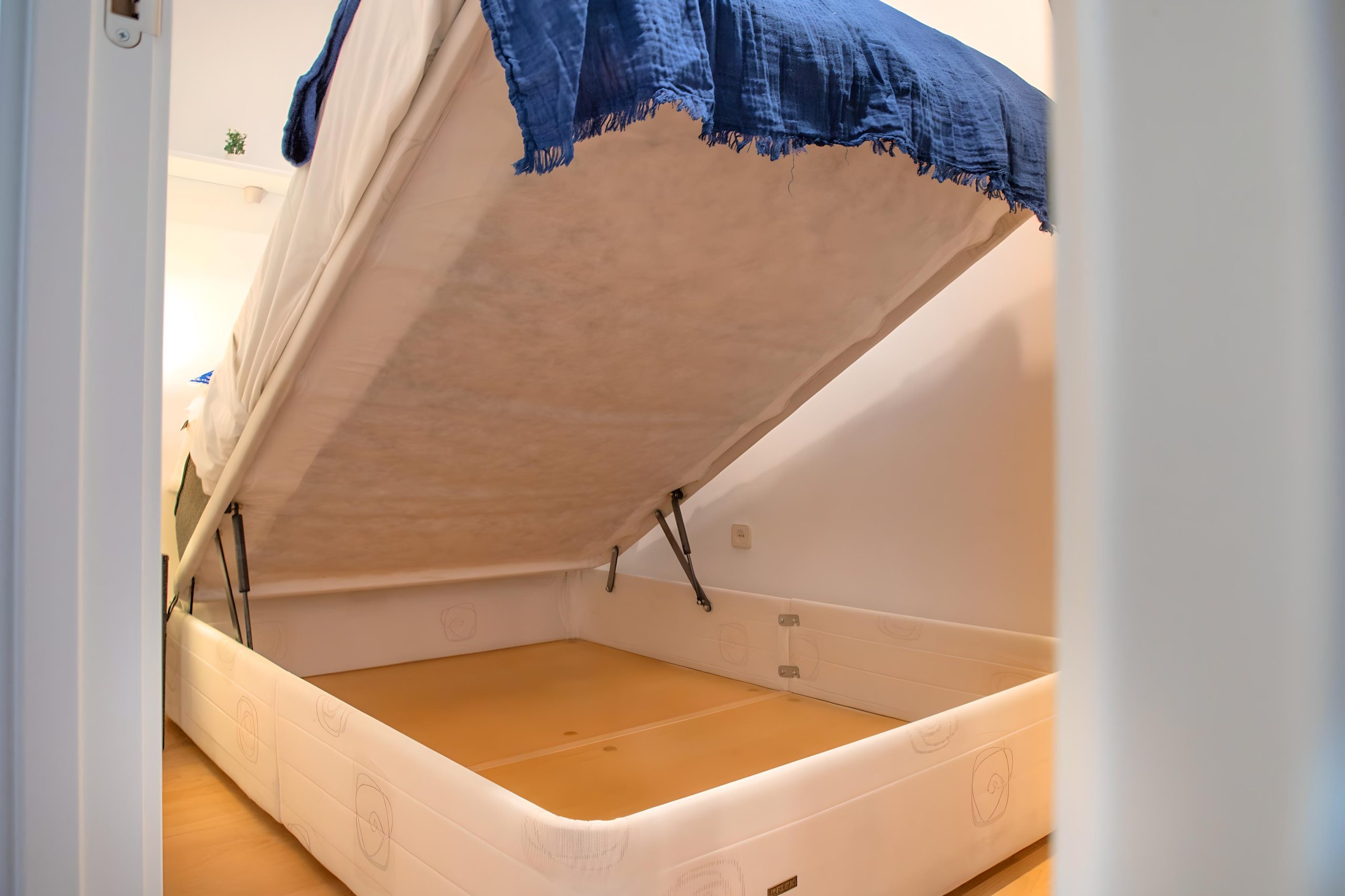 La habitación ofrece un ambiente cómodo y funcional, equipada con una cama de 135x190 cm con canapé, proporcionando un amplio espacio de almacenamiento. También cuenta con armarios empotrados, ideales para mantener todo en orden y aprovechar al máximo el espacio.
