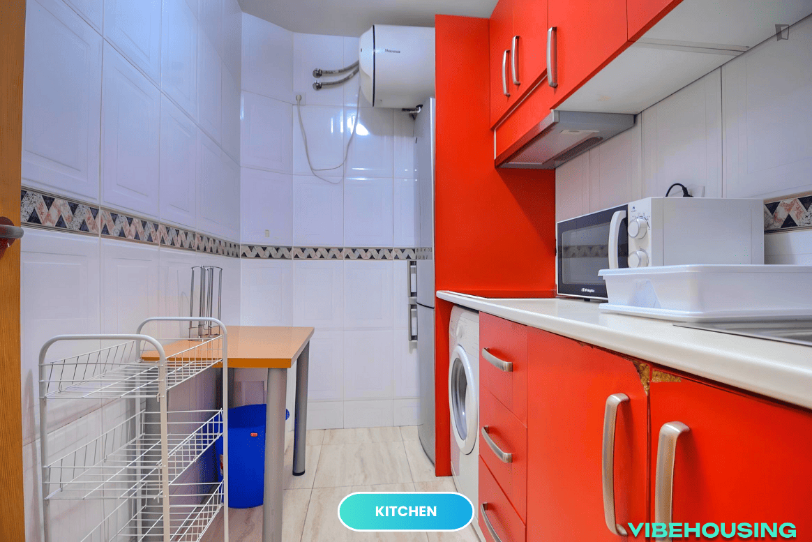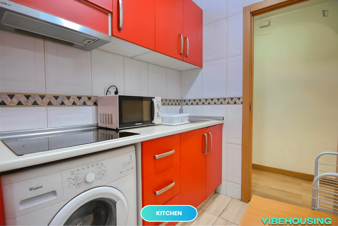 El apartamento cuenta con una cocina completamente equipada, ideal para preparar tus comidas y disfrutar de la vida diaria con tus compañeros de piso. La zona de calle Amapola es tranquila y dispone de supermercados, cafeterías, restaurantes y otros servicios a pocos minutos, para que tengas todo lo que necesitas cerca de casa.