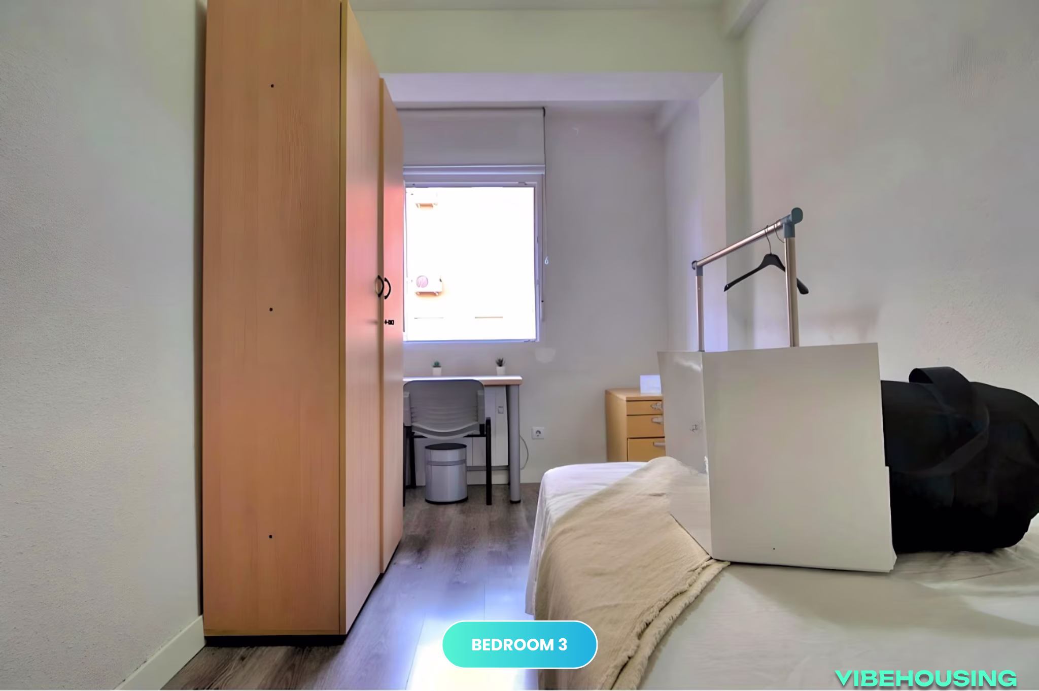 Esta habitación de 7 m² en un apartamento de coliving en Albacete 14, Getafe es ideal para jóvenes profesionales y estudiantes de la UC3M que buscan un espacio compacto y funcional. Con una cama de 105 cm con somier y una vista exterior, ofrece un ambiente acogedor para estudiar y descansar. El apartamento incluye WiFi de alta velocidad y servicio de limpieza quincenal para mantener el espacio siempre limpio. Ubicada cerca de la Universidad Carlos III y del transporte público, ¡es la opción perfecta para quienes buscan un lugar funcional y bien ubicado en Getafe!
