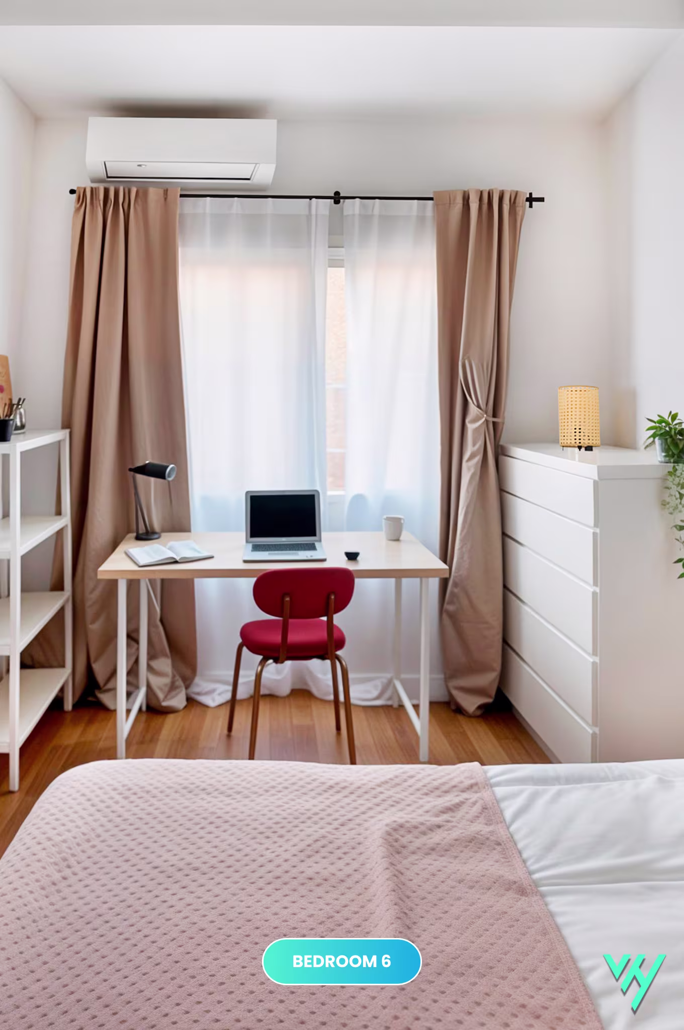 Esta habitación exterior de 14 m² es ideal para quienes buscan comodidad y un extra de confort. Además de su amplitud y luz natural, cuenta con aire acondicionado, perfecto para los meses más calurosos. Equipada con cama de 135 cm, escritorio, silla y armario, es un espacio funcional y acogedor.