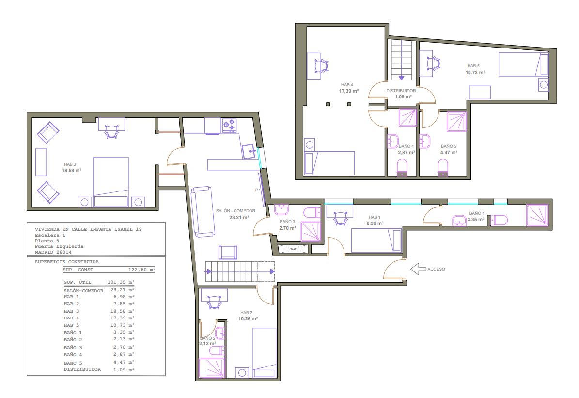 Piso de Coliving de 110 m² en Atocha, Madrid, con 5 Habitaciones con Baño Privado, Ideal para Estudiantes y Jóvenes Profesionales